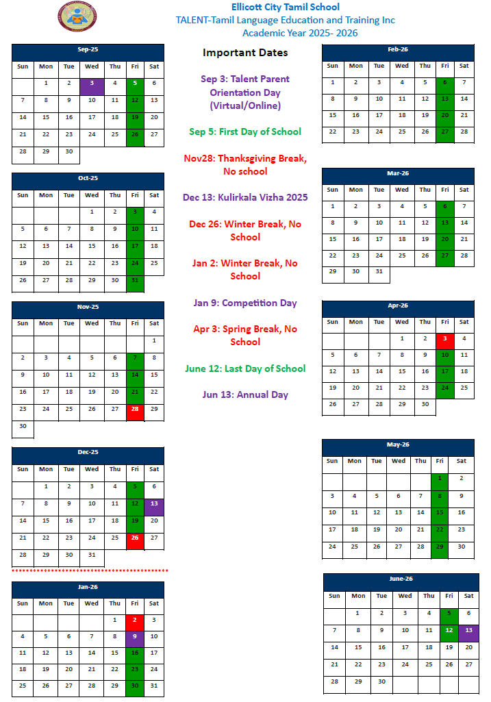TALENT - TAmil Language Education aNd Training inc is a volunteer based, not for profit (501-(c)) Organization for Tamil Education. TALENT school proudly steps into its 22nd academic year 2024 - 2025!